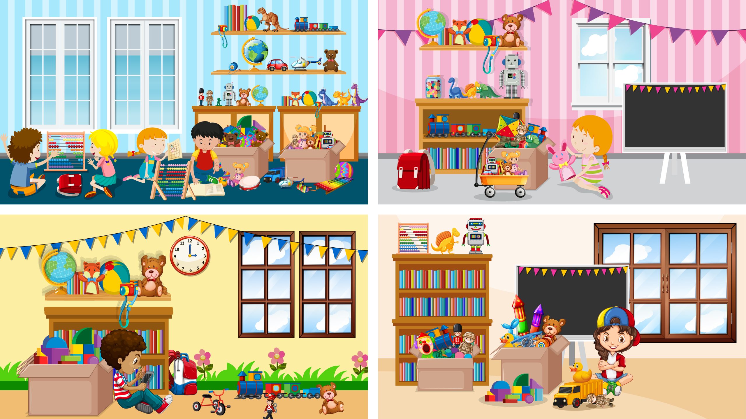 اعمالنا Four scenes with children playing in different rooms illustration Workwear uniform realistic set with isolated icons of overall orange vest trousers protective gloves and eyeglasses vector illustration 3D exhibit booth composition with promo leaflets advertising banners with text and notice board stand design vector illustration Corporate Management Strategy Solution Branding Concept